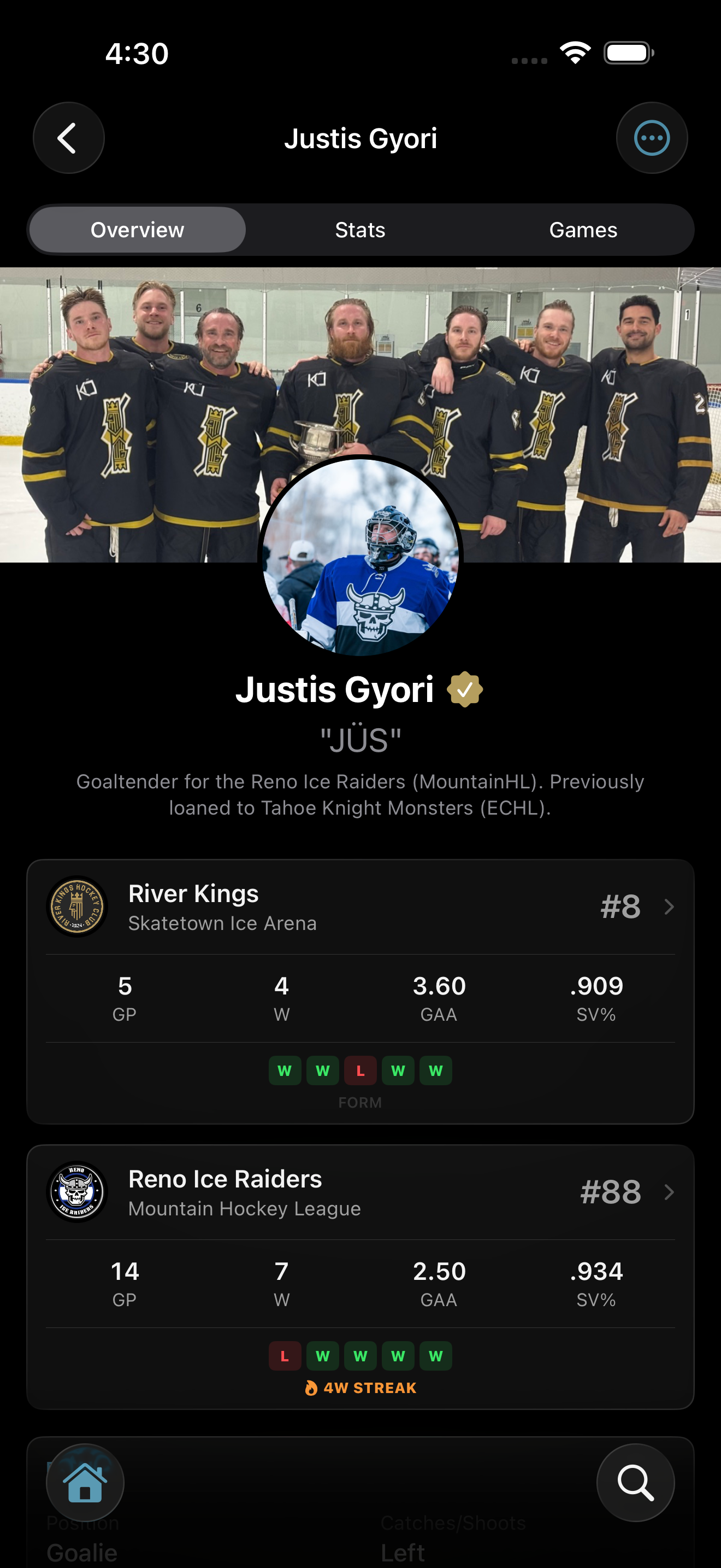Play at more than one rink? Your stats roll up into a single career profile. Claim any profile at any time, and changes are always reversible.